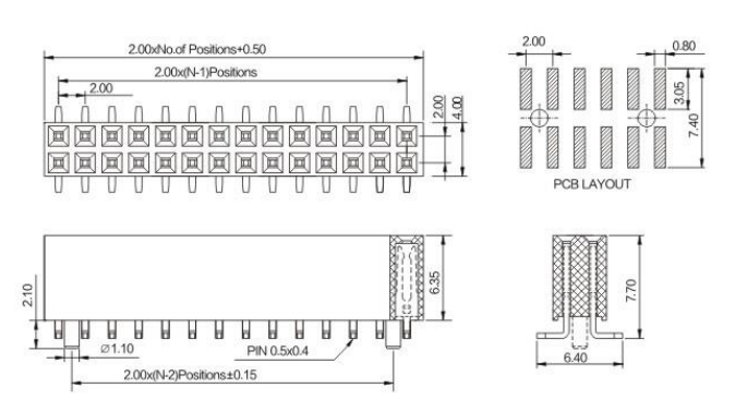2.00mm 间距排母,直插焊板型,折弯焊板型